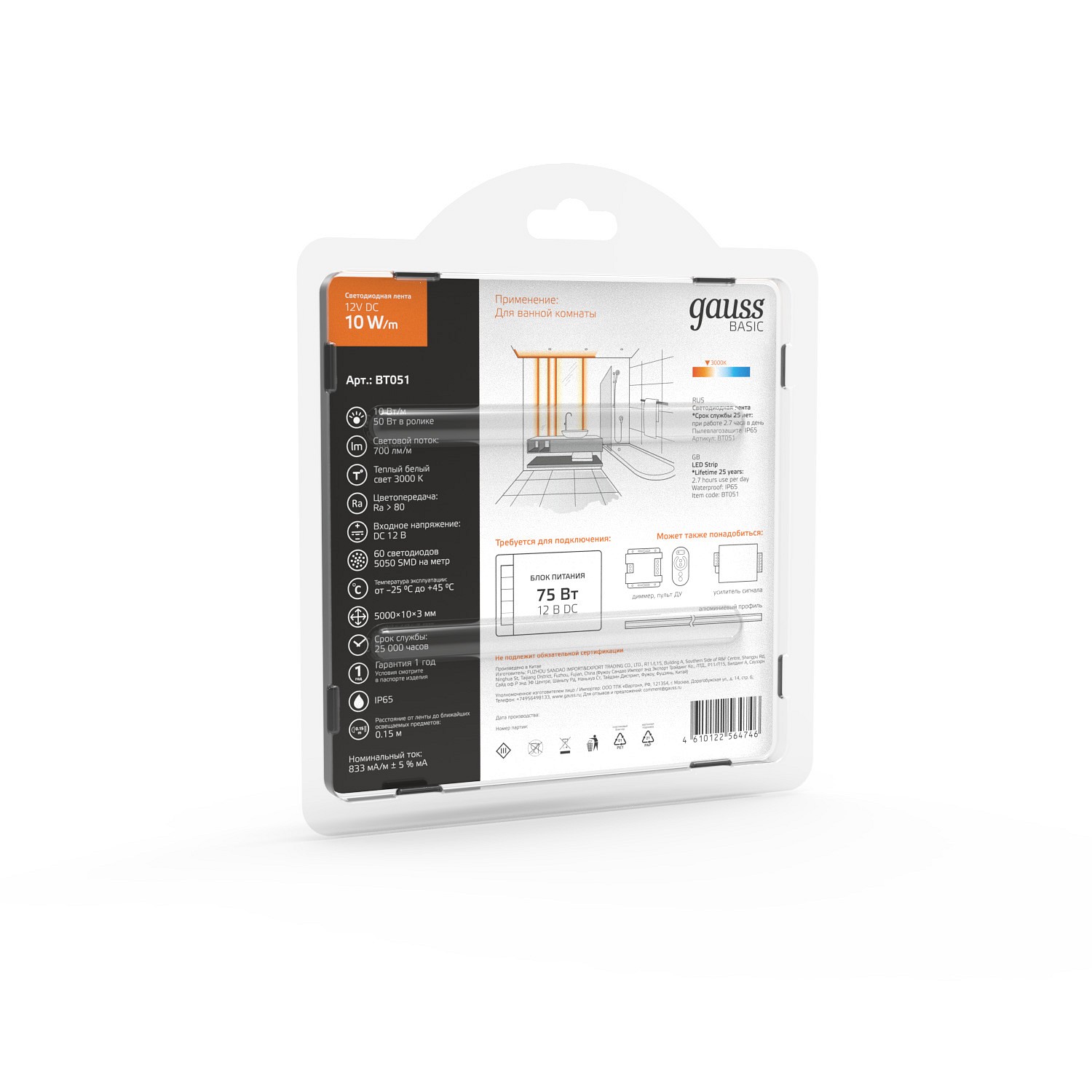 | Альтернативное название | Лента светодиодная Gauss Basic BT051 |