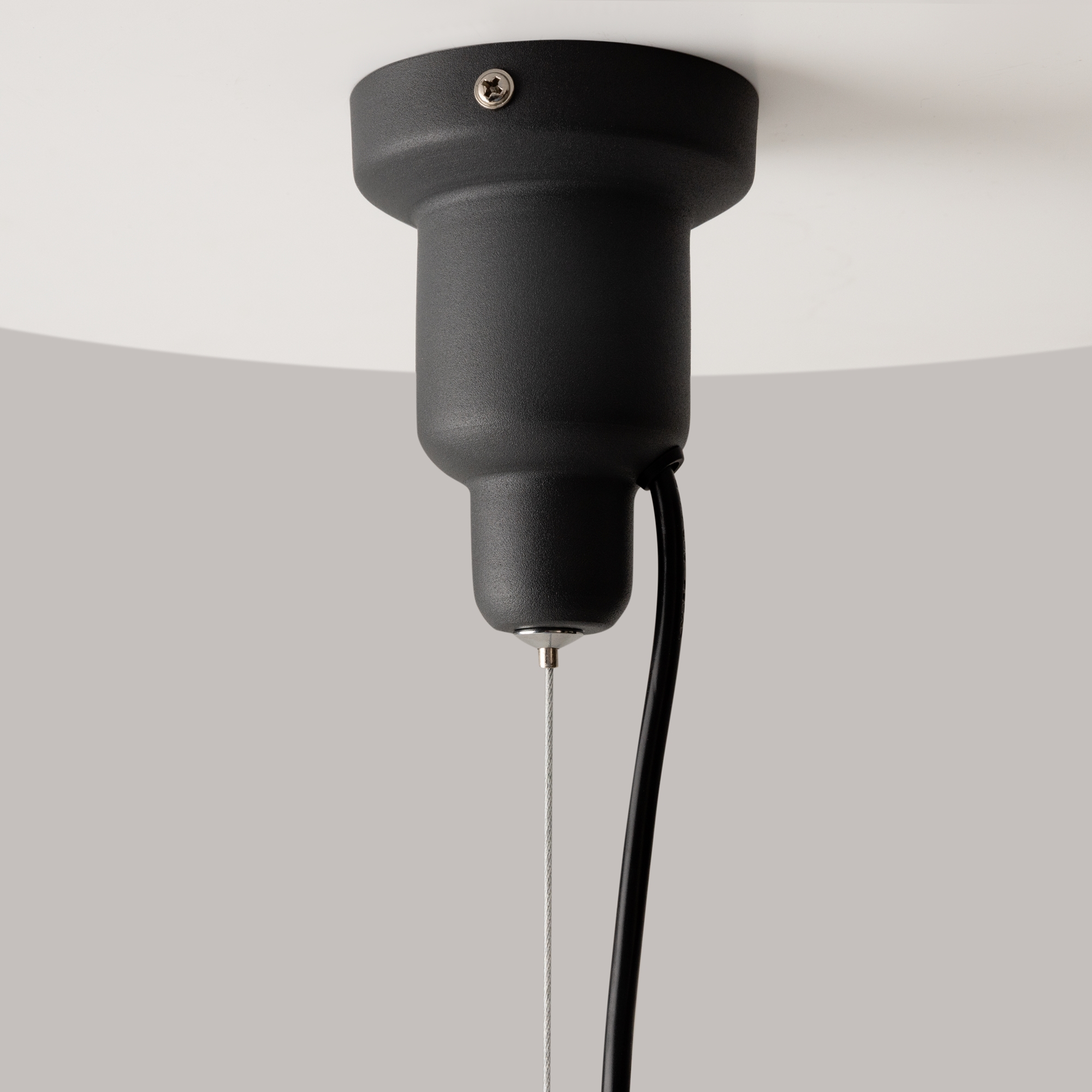Арматура и плафон из металла. Три варианта оттенков: белый, серый и черный. Порошковое окрашивание с эффектом муара. Высота регулируется