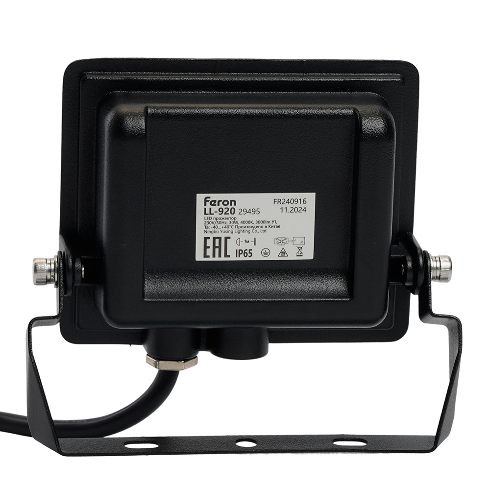 Прожектор светодиодный многоматричный с монтажным креплением на кронштейн, (ДО) FERON LL-920 , 30W, 4000К (белый), 230V/50Гц, 3000Lm, IP65, угол рассеивания 120°, 24*SMD2835, раб.t -40°C - +40°C, цвет чёрный, корпус алюминий литой под давлением + стекло, 127*107*28 мм